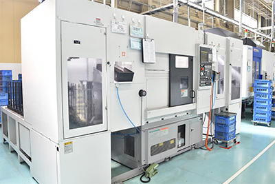 鍛造品、アルミダイカスト品への切削加工ができる設備です。 ターレット刃物台を搭載し、高剛性でハイスピードな切削加工が実現できます。 ワークストッカー、搬送ローダーを搭載しており、一定時間の無人運転が可能です。