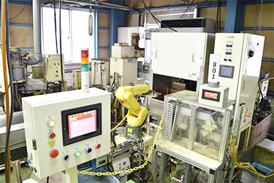 NC自動盤で加工した切削部品や鍛造部品へネジの塑性加工を行う設備です。 様々な歯形のネジ形状を形成することが可能です。 当社では超精密送りネジの量産加工を行っています。 またロボットによる自動搬送装置を設備と一体化させることで完全自動生産が実現できています。