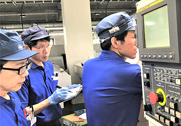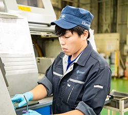 当社技術の根幹を担う研修のひとつです。業務に活かすだけでなく、旋盤資格試験へのチャレンジを大いに奨励し会社からも全面的にサポートています。